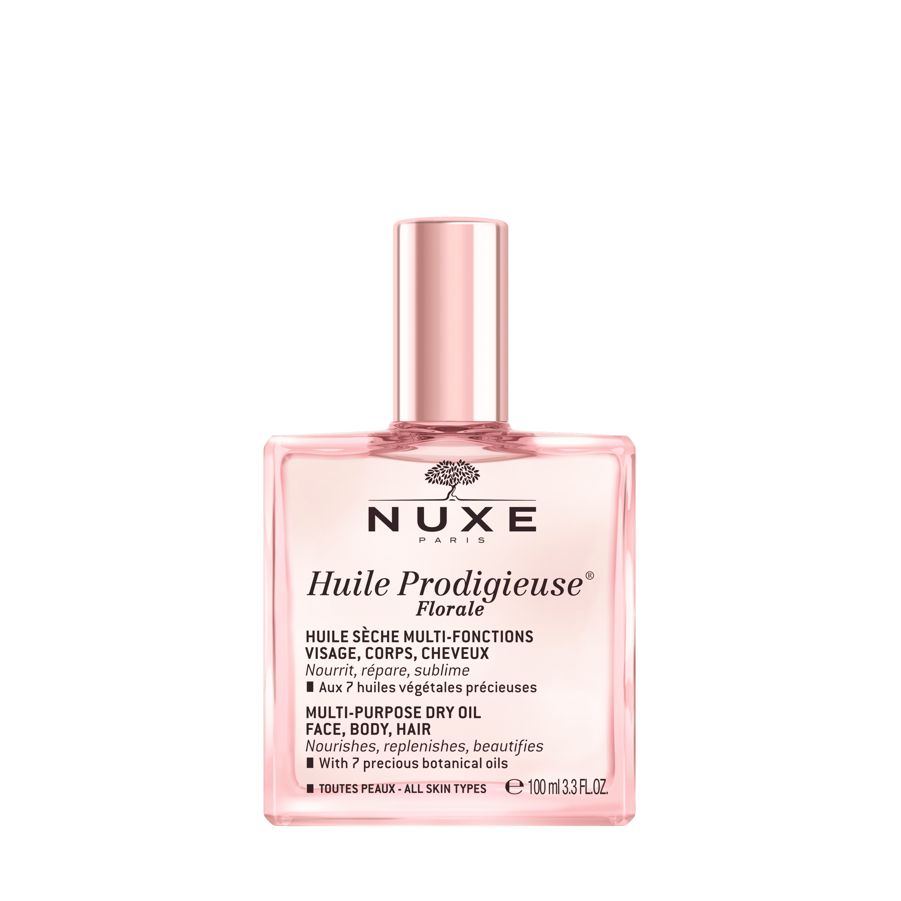 Többfunkciós száraz olaj arcra, testre és hajra. Táplálja a bőrt, segít megőrizni rugalmasságát, miközben friss, virágos illatot ad.