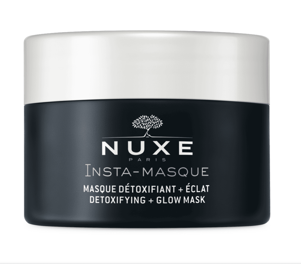 A Nuxe Insta méregtelenítő, ragyogásfokozó maszk rózsavíz és aktív szén kombinációját tartalmazza. Az aktív szén segít eltávolítani a szennyeződéseket és a felesleges faggyút, míg a rózsavirágvíz támogatja a bőr komfortérzetét. Fekete gél textúrája vízzel érintkezve tejjé alakul, így könnyen leöblíthető. Használat után a bőr tisztábbnak, frissebbnek és élénkebb megjelenésűnek tűnik.