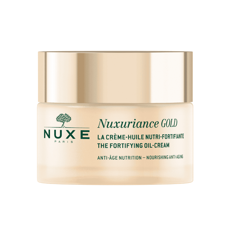 A Nuxe Nuxuriance Gold bőrerősítő olaj-krém Sáfrány és Murvafürt Bi-Floral sejteket kombinál Porcelánrózsa Oleoactive összetevővel és természetes nutri-erősítő komplexszel. Ez a gazdag formula támogatja a bőr táplálását és feszességét. Rendszeres használat mellett a bőr teltebbnek, rugalmasabbnak és egységesebbnek tűnik.