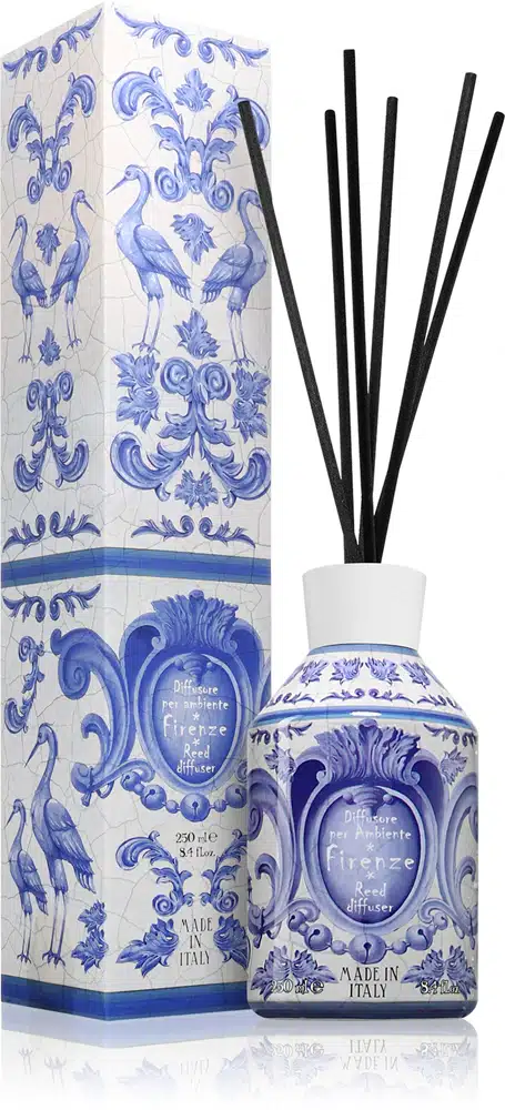 A Firenze aroma diffúzor elegáns és harmonikus módja annak, hogy otthonát finom illattal töltse meg. A pálcás illatosító folyamatosan és egyenletesen árasztja az illatot a térben, miközben dekoratív megjelenésével stílusos kiegészítője lehet bármely helyiségnek.