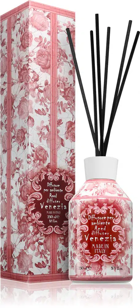 A Venezia aroma diffúzor elegáns és kellemes módja annak, hogy otthonát finom illattal töltse meg. A pálcás illatosító folyamatosan és egyenletesen árasztja magából az illatot, miközben dekoratív kiegészítőként is stílusos eleme lehet a lakótérnek.
