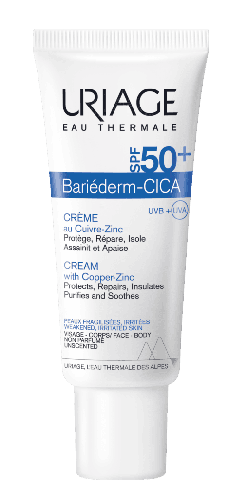Regeneráló és védő krém SPF50+ fényvédelemmel irritált vagy sérült bőr ápolására. Segít nyugtatni a bőrt, támogatja a regenerációt és védi a bőrt a napsugárzás káros hatásaitól.